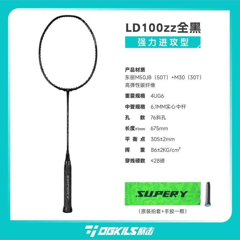 OGKIL LD100ZZ Badminton Racquet 4UG6 Black (All Set)